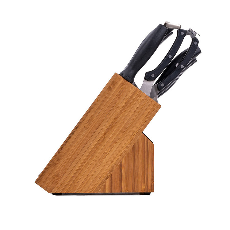 برگهف (®BergHOFF) برندی بینالمللی و نامآشنا، با اصالت بلژیکی، در زمینه تولید لوازم پختوپز و آشپزخانه غیربرقی است و با هدف ارتقای تجربه آشپزی روزمره، تولیدات گسترده و متنوعی با کیفیت گرید جهانی و استانداردهای اروپایی ارائه داده است. مقر اصلی برند برگهف، کشور بلژیک میباشد. فعالیت اصلی شرکت ®BergHOFF، در زمینه خلق، تولید و توسعه طراحیهای پیشرو و پیشرفته لوازم آشپزخانه است. این ست چاقوی کاربردی از جنس استیل ضدزنگ در طیف گستردهای از کارهای روزمره، از پوست کندن و برش دادن سبزیجات گرفته تا بریدن گوشت یا نان، عالی عمل میکند. بلوک شامل چاقوی خرد کن، چاقوی همهکاره، چاقوی ساطوری،ساطور، چاقوی گوشت و مرغ، چاقوی سرآشپز، یک عدد قیچی مرغ و یک چاقو تیز کن استیل است. هر چاقو دارای یک دسته ارگونومیک و پرچ سه گانه و یک تیغه تیز است که مستقیماً در غذای شما حرکت می کند. پایه چوبی از جنس بامبو، علاوه بر محافظت و نظمدهی و ایمنی، زیبایی و جلوه خاصی نیز به نمایش میگذارد. تیغه تیز از استیل ضدزنگ ساخته شده است که در برابر لکهها و همچنین خوردگی مقاوم است، تیز بودن طولانی مدت تیغه تضمینی بوده و نگهداری آن آسان است. وجود متریال عالی، کیفیت و دوام دسته چاقوها را تضمین میکند. به عبارت دیگر، این بلوک چاقوی کاربردی با یک دستیار عالی برای هر آشپزی محسوب میشود. ویژگیهای منحصر به فرد: متریال مرغوب اتصالی در دسته چاقوها با پرچ || تیغه استیل ضد زنگ با حفظ قدرت برش در طی زمان || طراحی ارگونومیک جهت جلوگیری از خطر سرش در اعمال فشار || قابل شستشو در ماشین ظرفشویی: (شستشو با دست توصیه میشود) || ابعاد بستهبندی: 35×28.5×11.5 شامل : 1 عدد چاقوی خرد کن – تیغه 8.5 سانتی متر | 1عدد چاقوی همه کاره – تیغه 12 سانتی متر | 1 عدد ساطور – تیغه 17 سانتی متر | 1 عدد چاقو ساطوری – 18 سانتی متر | 1 عدد چاقوی سرآشپز – تیغه 20 سانتی متر | 1 عدد چاقوی گوشت و مرغ – تیغه 20 سانتی متر | 1 عدد چاقو تیز کن – تیغه 20 سانتی متر | یک جفت قیچی مرغ – 25 سانتی متر | 1 عدد بلوک چوبی