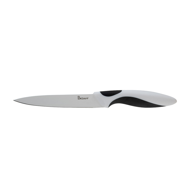 محصولات کاربردی آشپزخانه، مدل Bedaff، با اصالت فرانسوی، کاربردی و باکیفیت بوده و بعنوان کالاهای اقتصادی، جهت استفاده روزمره قابل استفاده است. این چاقوی کاربردی در طیف گستردهای از کارهای روزمره، از پوست کندن و برش دادن سبزیجات گرفته تا بریدن گوشت یا نان، عالی عمل میکند. تیغه تیز از استیل ضدزنگ ساخته شده است که در برابر لکهها و همچنین خوردگی مقاوم است، تیز بودن طولانی مدت تیغه تضمینی بوده و نگهداری آن آسان است. وجود متریال عالی، کیفیت و دوام دسته چاقو را تضمین میکند. به عبارت دیگر، این چاقوی کاربردی با طول تیغه 12 سانتیمتر یک دستیار عالی برای هر آشپزی محسوب میشود. ویژگیهای منحصر به فرد: متریال مرغوب اتصالی در دسته چاقو (ترکیب سیلیکون و ABS) | تیغه استیل با حفظ قدرت برش در طی زمان | طراحی ارگونومیک جهت جلوگیری از خطر سرش در اعمال فشار | قابل شستشو در ماشین ظرفشویی: (شستشو با دست توصیه میشود) | ابعاد محصول: 2.5×23 سانتی متر | طول تیغه : 12 سانتی متر | ابعاد بستهبندی: 7×27 سانتی متر | وزن خالص: 46 گرم