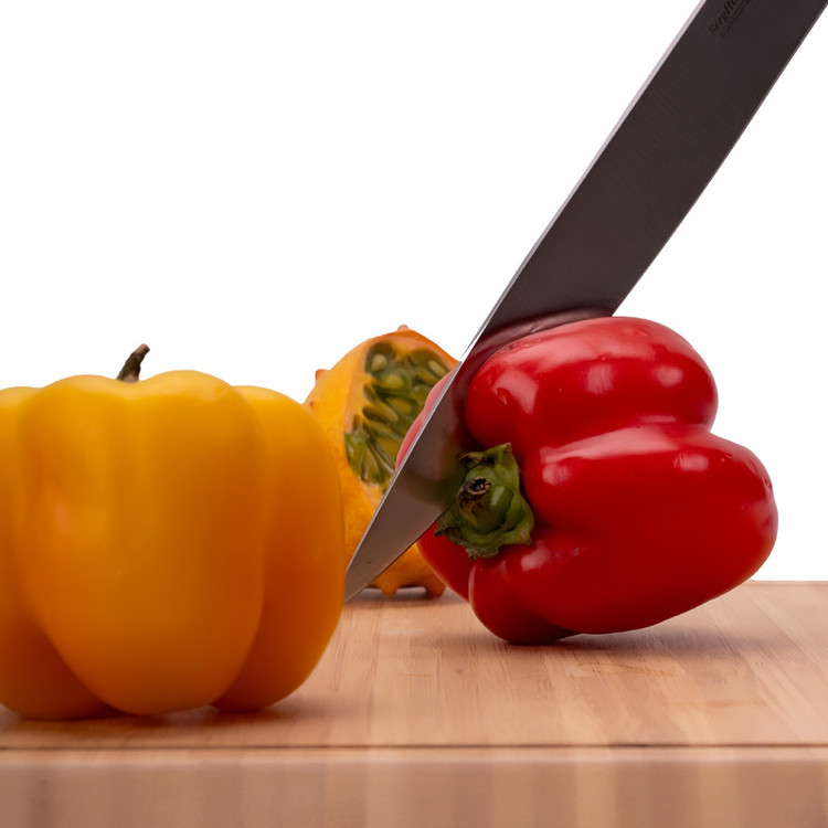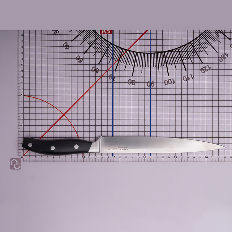 ویژگیهای منحصر به فرد: وجود 3 پرچ اتصالی در دسته چاقو تیغه استیل با حفظ قدرت برش در طی زمان طراحی ارگونومیک جهت جلوگیری از خطر سرش در اعمال فشار قابل شستشو در ماشین ظرفشویی: (شستشو با دست توصیه میشود) ابعاد تیغه محصول : 20 ابعاد بستهبندی: 36.5x8