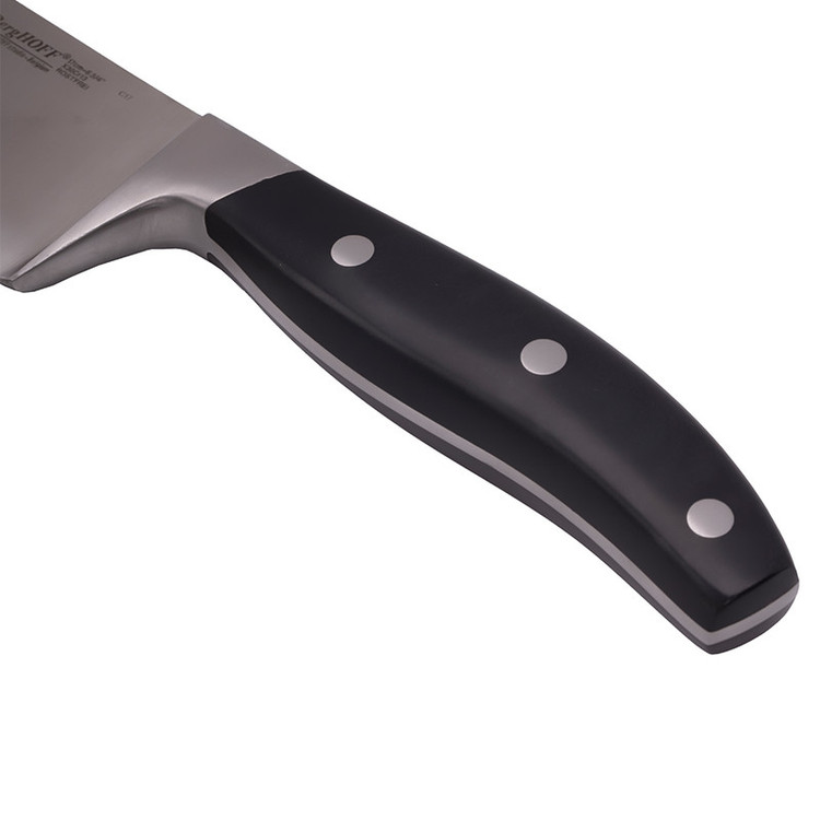 برگهف (®BergHOFF) برندی بینالمللی و نامآشنا، با اصالت بلژیکی، در زمینه تولید لوازم پختوپز و آشپزخانه غیربرقی است و با هدف ارتقای تجربه آشپزی روزمره، تولیدات گسترده و متنوعی با کیفیت گرید جهانی و استانداردهای اروپایی ارائه داده است. مقر اصلی برند برگهف، کشور بلژیک میباشد. فعالیت اصلی شرکت ®BergHOFF، در زمینه خلق، تولید و توسعه طراحیهای پیشرو و پیشرفته لوازم آشپزخانه است. این ساطور کاربردی از جنس استیل ضدزنگ در طیف گستردهای از کارهای روزمره، عالی عمل میکند. تیغه تیز از استیل ضدزنگ ساخته شده است که در برابر لکهها و همچنین خوردگی مقاوم است، تیز بودن طولانی مدت تیغه تضمینی بوده و نگهداری آن آسان است. وجود متریال عالی و 3 پرچ اتصالی، کیفیت و دوام دسته چاقو را تضمین میکند. به عبارت دیگر، این چاقوی کاربردی با طول تیغه 17 سانتیمتر یک دستیار عالی برای هر آشپزی محسوب میشود.