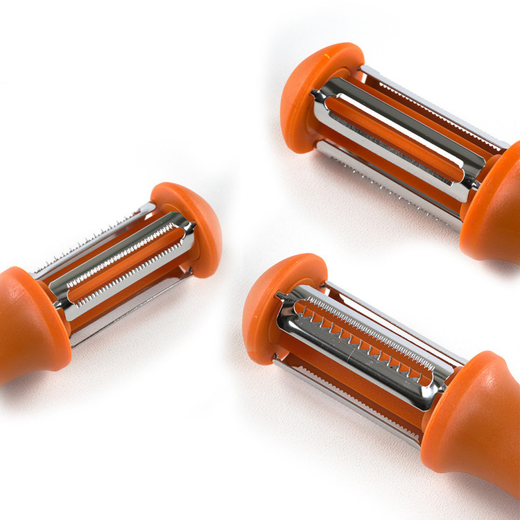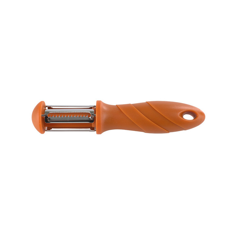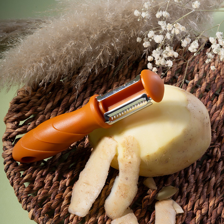 محصولات کاربردی آشپزخانه، مدل Bedaff، با اصالت فرانسوی، کاربردی و باکیفیت بوده و بعنوان کالاهای اقتصادی، جهت استفاده روزمره قابل استفاده است. یکی از ابزاری که در آشپزخانه بسیار کارآمد است و نقش مهمی در همراهی با آشپز دارد، پوست کن است که برای پوست کندن سبزیجات و میوه های مختلف میتوان از آن استفاده کرد. این ابزار کاربردی در صرفه جویی زمان به ما کمک شایانی میکند. پوست کن 3 حالته بداف از بدنه پلاستیک باکیفیت ساخته شده است تا در برابر فشار دست مقاومت لازم را داشته باشد و به مرور زمان دچار آسیب دیدگی یا شکستگی نشود. این محصول دارای سه سری متفاوت شامل یک سری رشته کن و دو سری پوست کن است و شما می توانید به راحتی بر اساس نیاز خود از سری های متفاوت آن استفاده کنید. در واقع این محصول یک وسیله ضروری در هر آشپزخانه ای است که شما با خرید آن سه پوست کن را در یک خرید خواهید داشت. ویژگیهای منحصر به فرد: دارای 3 سری مختلف | تیغه های بسیار تیز و برنده | دارای دو مدل سری پوست کن، یک سری رشته کن | طراحی ارگونومیک جهت جلوگیری از خطر سرش در اعمال فشار | ابعاد محصول: 3.5×17 سانتی متر | طول تیغه : 4.5 سانتی متر | ابعاد بستهبندی: 8×25 سانتی متر