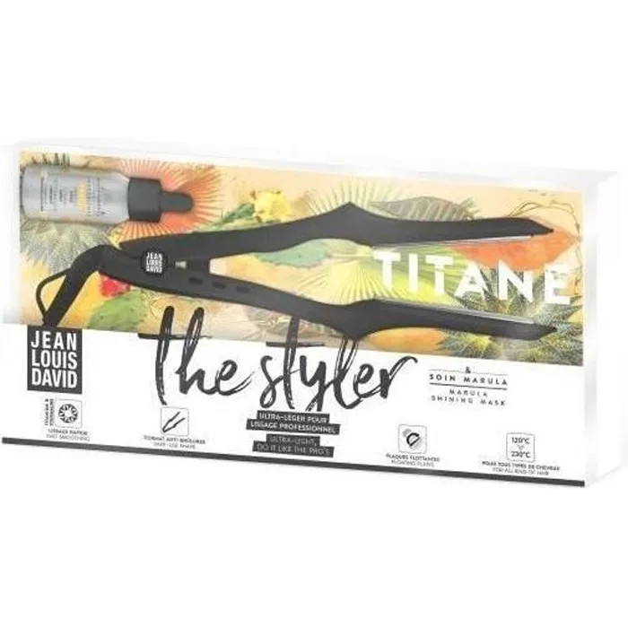 The Styler - صاف کننده سبک و ارگونومیک - تیتانیوم و تورمالین - صفحات شناور - خاکستری رنگین کمانی - روکش صفحه تیتانیوم و تورمالین - صفحات شناور - 12 درجه حرارت برای انواع مو - طراحی ارگونومیک برای سهولت استفاده - درمان حرفه ای Marula 30 شامل.