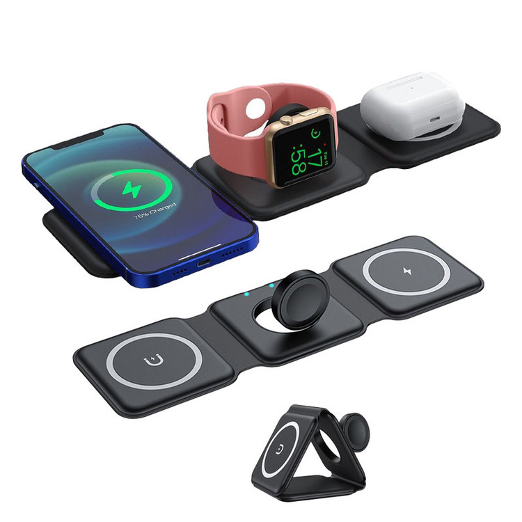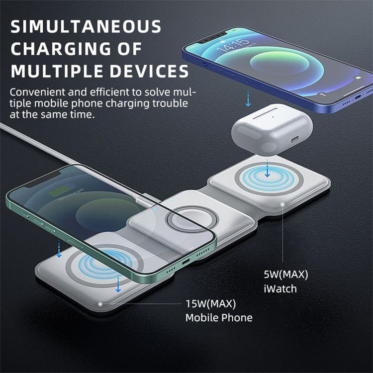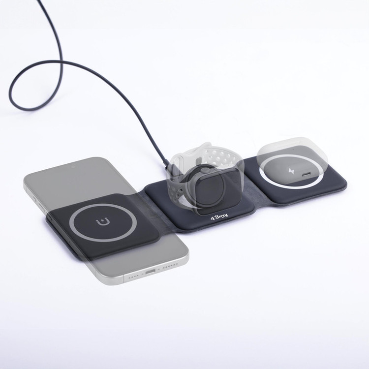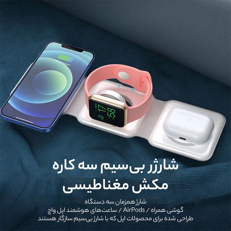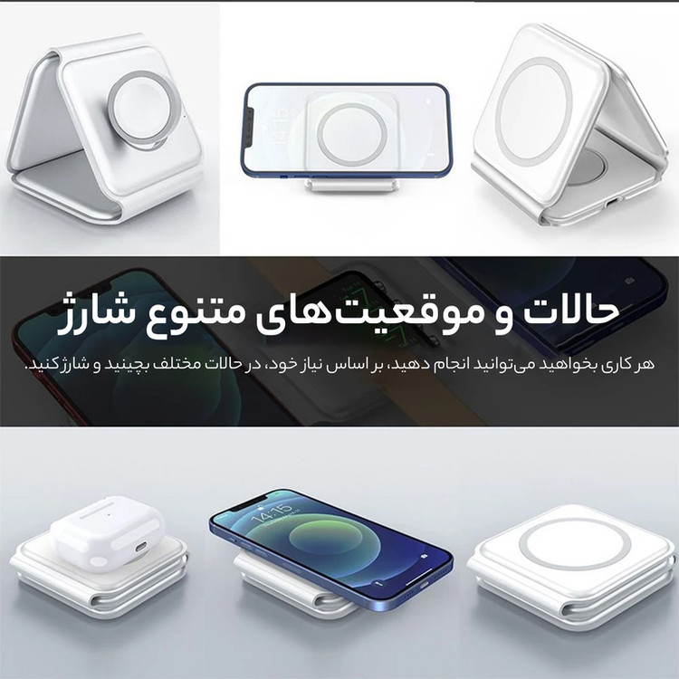 شارژر بیسیم 3 در 1 قابلحمل فوربری برای افرادی که به دنبال یک راهکار چندکاره برای شارژ آیفون، اپل واچ و ایرپاد هستند، طراحی شده است. این شارژر دارای قابلیت مگسیف برای اتصال قوی، شارژ سریع ۱۵ وات، و طراحی تاشو است که بهراحتی در جیب یا کیف قرار میگیرد.