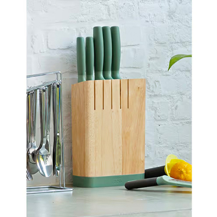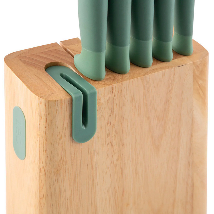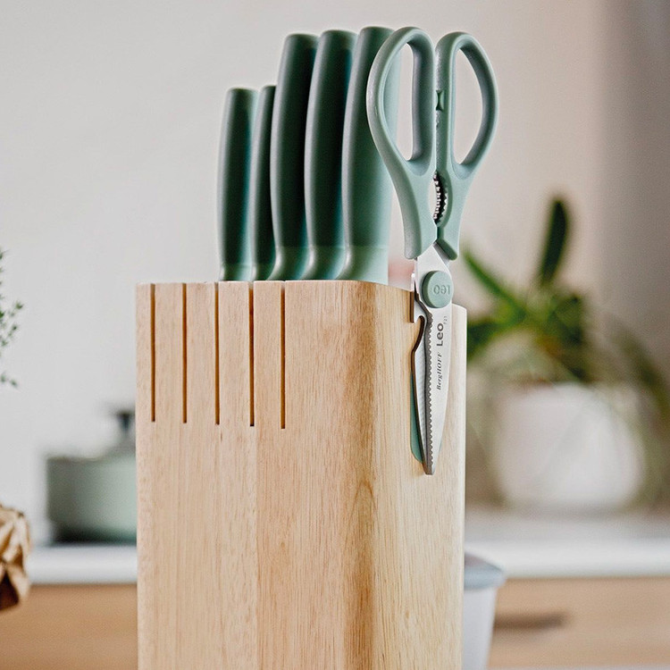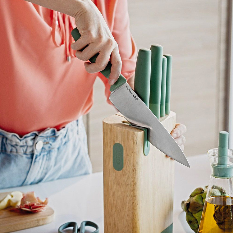 برند خلاق و پریمیوم برگهف ، با اتکا به ده ها سال تجربه تولید لوازم آشپزخانه در بلژیک ، محصولی زیبا و کارآمد به بازار معرفی کرده است. این ست 6 پارچه از سری جدید و مینیمال LEO می باشد که با نام فارست ارائه می گردد. 5 چاقو مختلف به همراه استند و چاقو تیز کن ، یک پکیج عالی برای کاربر بوجود آورده است. سایز تیغه چاقوها به ترتیب سایز: کوچک 8 سانتی متری ، همه کاره 12 سانتی متری ، برش کاری 19 سانتی متری ، سرآشپز 19 سانتی متری و دندانه دار 23 سانتیمتری می باشد. استند این محصول با داشتن آهن ربا در ساید آن، میتواند پذیرای قیچی یا چاقوهای دیگر نیز باشد. طراحان برگهف با قراردادن شکاف چاقو تیز کن، این پکیج را تکمیل کرده اند. بدنه استند با متریال چوب، تیغه های استیل 18/10 ، دسته های ارگونومیک، گریپ بالای دسته ها ، طراحی مینیمال به همراه رنگ خاص .... از مشخصه های این محصول می باشند.