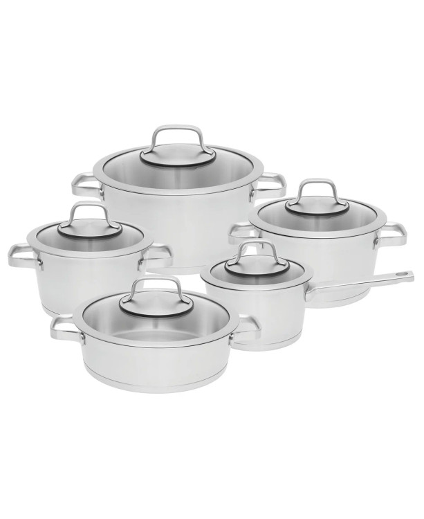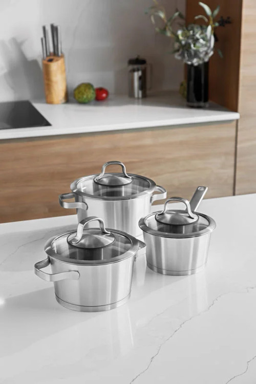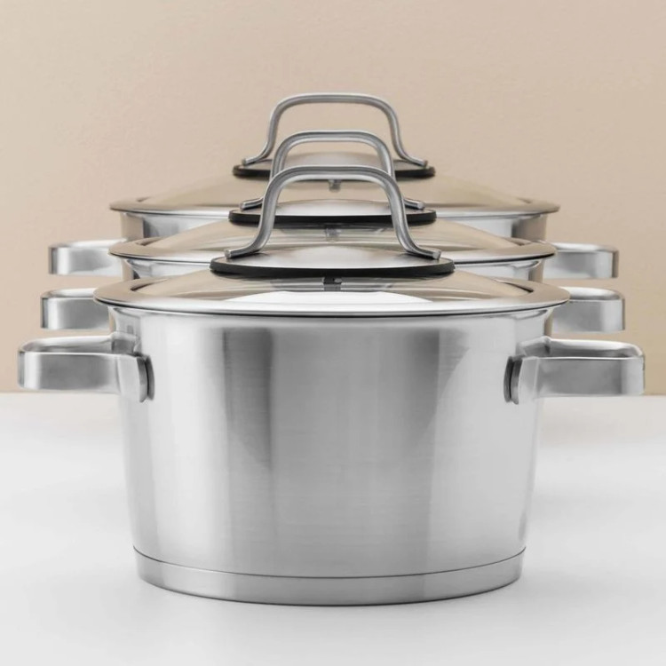 سرویس قابلمه منهتن از جنس استیل ضد زنگ 18/10 با روکش مات ساخته شده است. دستههای شیک و پوششهای شیشهای با لبه استیل ضد زنگ همچنین دارای یک پایه کپسولی 3 لایه برای توزیع سریع و یکنواخت حرارت هستند. مناسب برای همه منابع حرارتی. این سرویس شامل موارد زیر است: قابلمه 1.8 لیتری دربدار، قابلمه 2.5 لیتری دربدار، قابلمه 3.1 لیتری دربدار، قابلمه 5.2 لیتری دربدار و ماهیتابه عمیق 3.1 لیتری (10 اینچی) با درب.