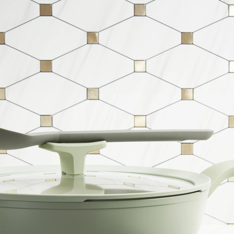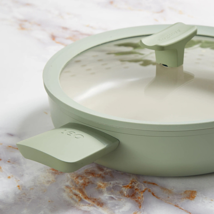 ماهیتابه سرخ کردنی Leo Balance، 10.25 اینچ، 3.1 کوارت. ساخته شده با پوشش سرامیکی نچسب CeraGreen پایدار و سالم، غیرسمی، بدون PTFE و PFAS، آلومینیوم بازیافتی و دسته خنکشونده برای پخت بدون روغن و بدون چربی، مناسب برای انواع اجاق گاز. این ماهیتابه سرخ کردنی با روکش، با بدنه آلومینیومی 100% بازیافتی که توزیع سریع و یکنواخت گرما را تضمین میکند و پوشش سرامیکی نچسب با کیفیت بالا، پایدار و سالم که به شما امکان میدهد با روغن کم یا بدون روغن آشپزی کنید، مطمئناً در کمترین زمان به یکی از ظروف مورد علاقه شما تبدیل خواهد شد. این ماهیتابه دارای یک دسته محکم خنکشونده است که لمس آن نرم است و گرفتن آن را راحت میکند. درب شیشهای آن به عملکرد نگهدارنده قاشق معروف ما مجهز شده است. بنابراین، چه هوس ریزوتو، پائلا یا سبزیجات سرخشده داشته باشید، کافیست مواد خود را در ماهیتابه قرار دهید و از طریق درب شیشهای شفاف که به شما کمک میکند تا با انرژی کارآمد بپزید و دارای سوراخ تخلیه برای صاف کردن آسان است، مراقب غذای خود باشید.